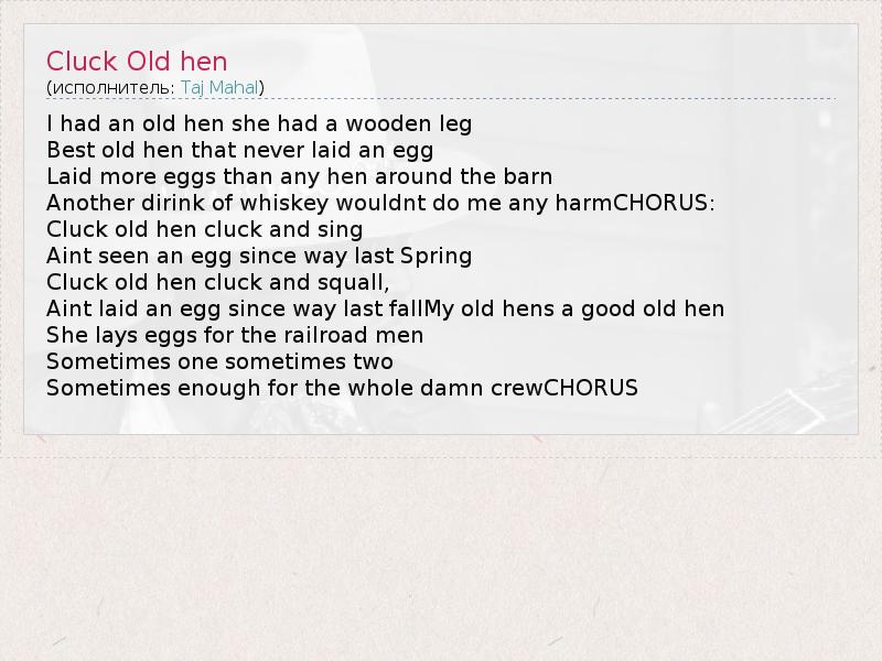 А как ты думаешь, о чем песня "Cluck Old hen" ?