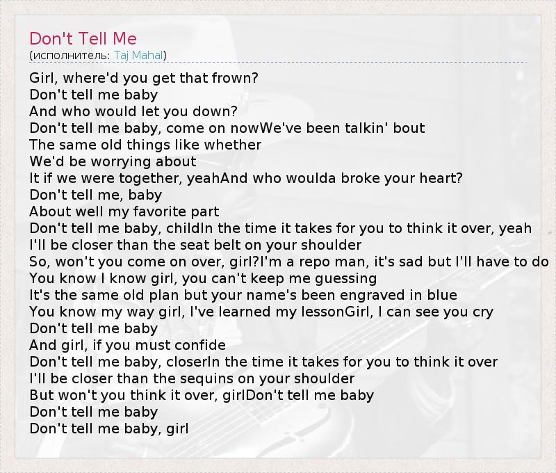 Don't tell me baby, girl