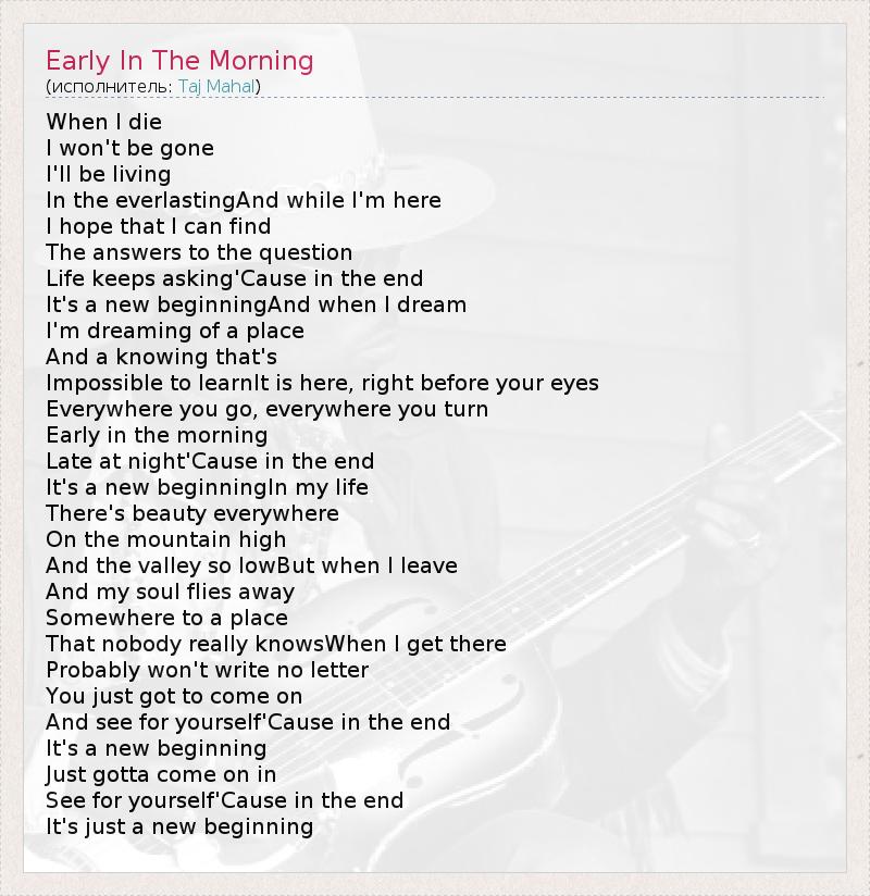 А как ты думаешь, о чем песня "Early In The Morning" ?