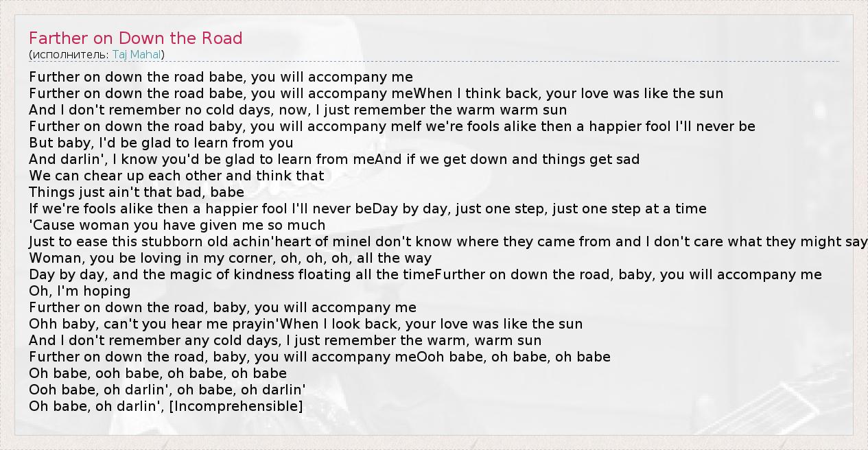 ГлавнаяИсполнителиTaj MahalFarther on Down the Road
