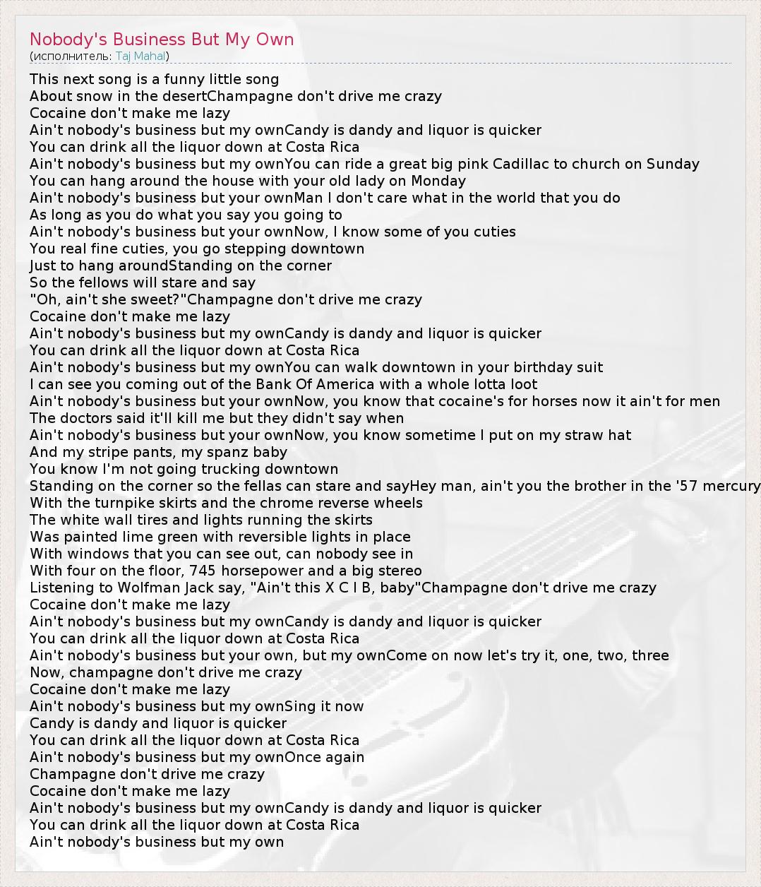 Ain't nobody's business but my ownCandy is dandy and liquor is quicker