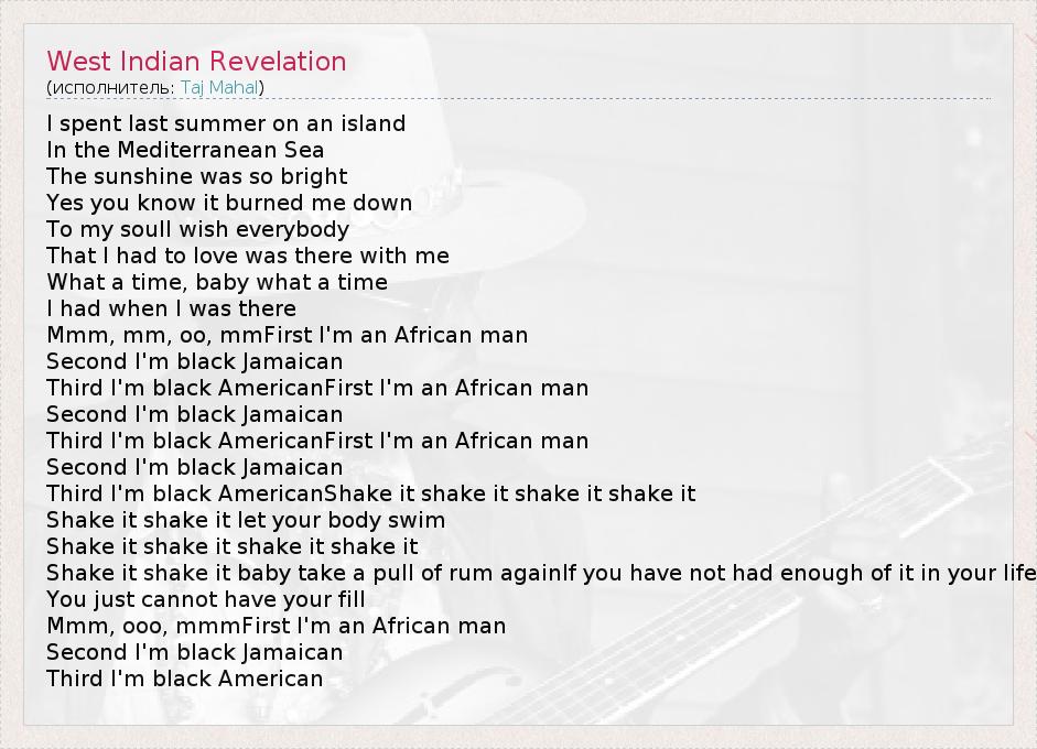 А как ты думаешь, о чем песня "West Indian Revelation" ?