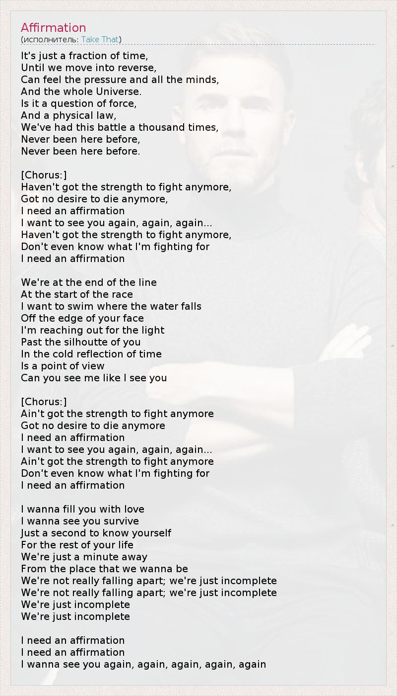 А как ты думаешь, о чем песня "Affirmation" ?