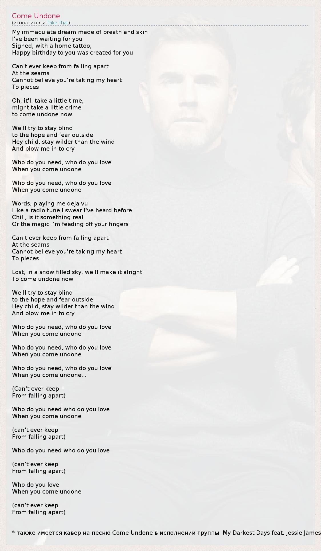 А как ты думаешь, о чем песня "Come Undone" ?