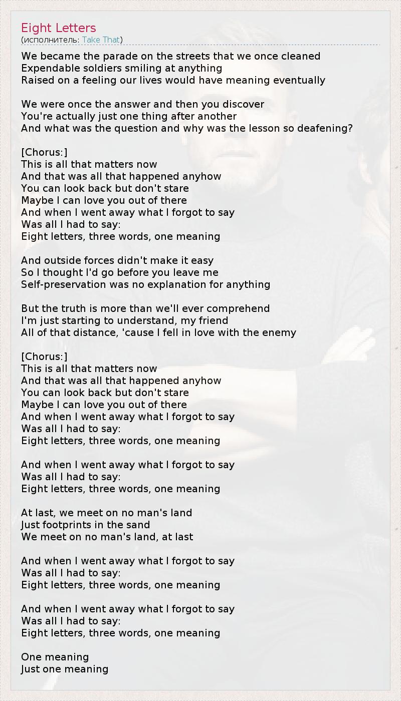 А как ты думаешь, о чем песня "Eight Letters" ?