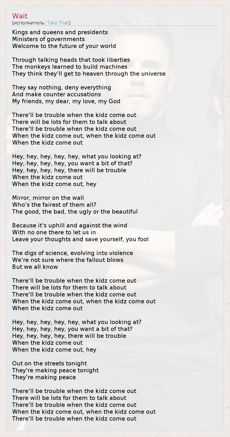 А как ты думаешь, о чем песня "Wait" ?
