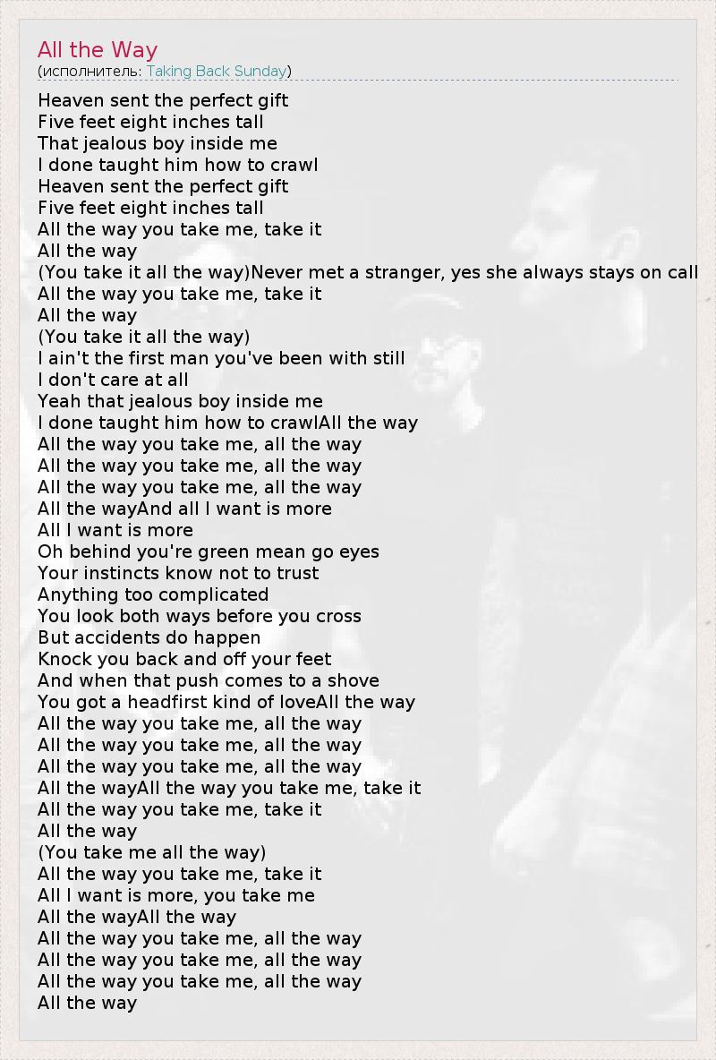 Это интересно:Taking Back Sunday - альтернативная рок-группа из США, сформированная в Лонг-Айленд, штат Нью-Йорк, в 1999 году. Изначально пятеро парней основали группу ещё в ноябре 1999 года, но состав, который можно назвать самым долгосрочным, основался в декабре 2002 года. Дебютный альбом "Tell All Your Friends" был записан в составе: Adam Lazzara (вокал, гитара), John Nolan (вокал, гитара), Eddie Reyes (гитара), Shaun Cooper (бас-гитара) и Mark O'Connell... продолжение