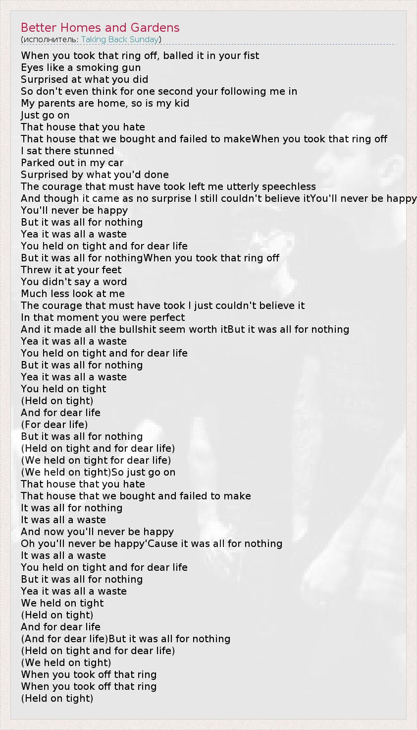 А как ты думаешь, о чем песня "Better Homes and Gardens" ?