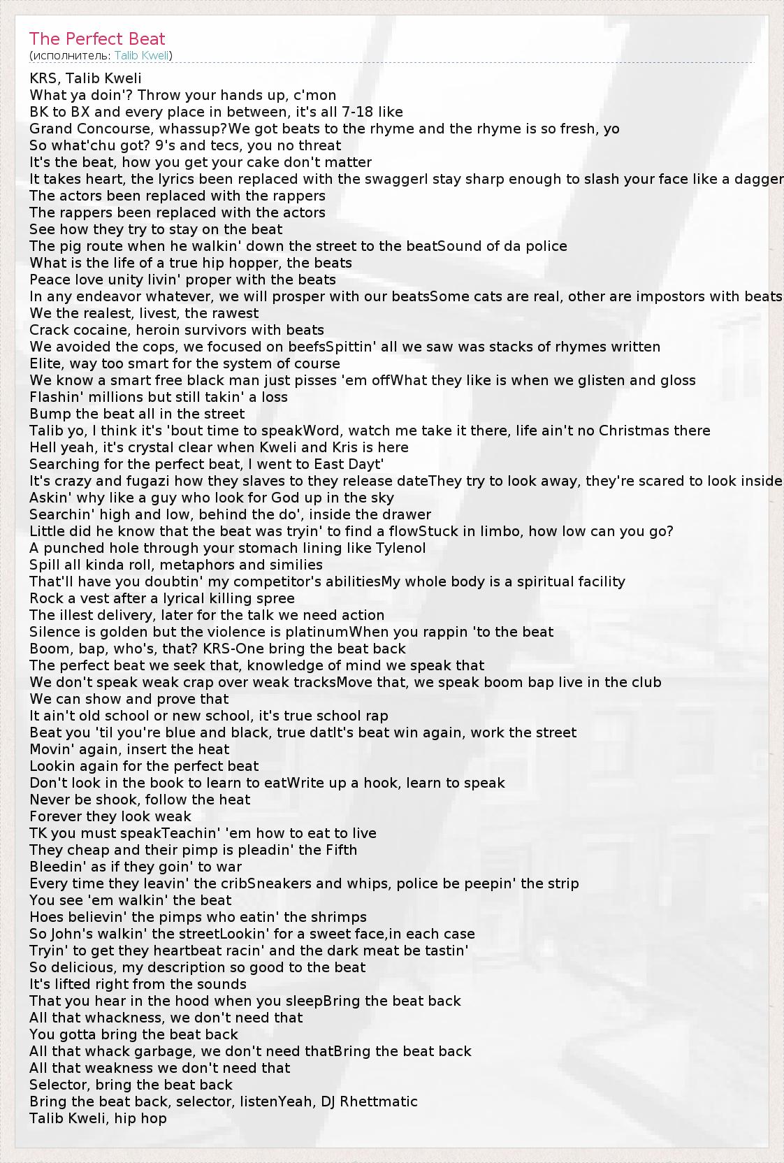 А как ты думаешь, о чем песня "The Perfect Beat" ?