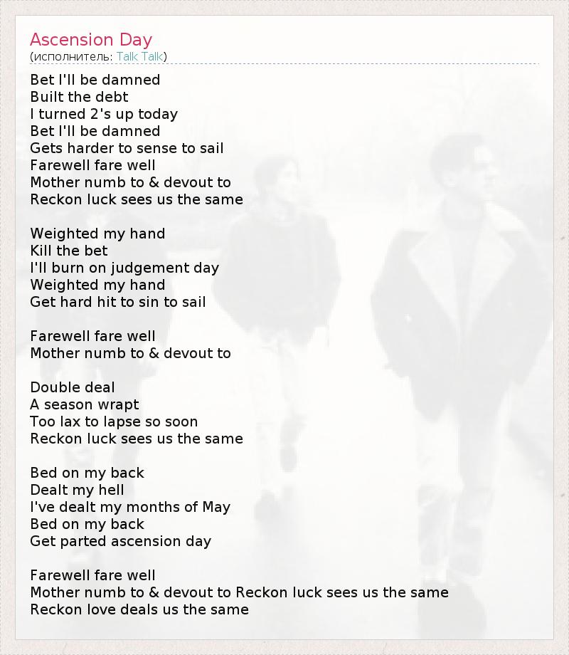 А как ты думаешь, о чем песня "Ascension Day" ?