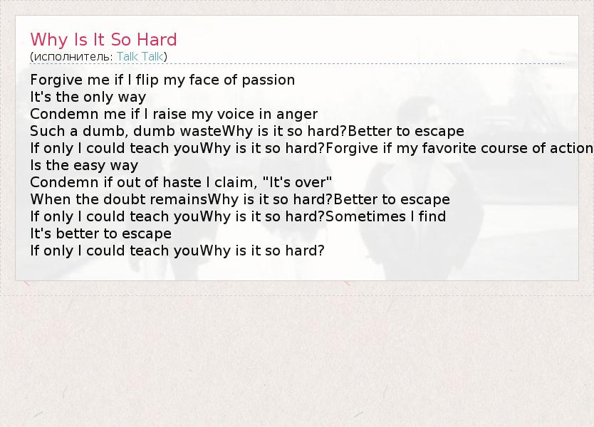 А как ты думаешь, о чем песня "Why Is It So Hard" ?