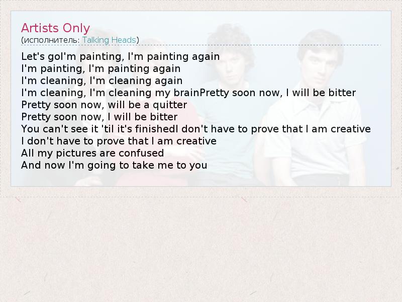 Это интересно:Talking Heads — американская рок-группа, образованная в 1975 году.Опираясь на фанк, классический минимализм и африканский рок, Talking Heads удалось создать наиболее оригинальную танцевальную музыку "новой волны". Основатели группы Дэвид Бирн и Крис Франтц вместе учились в одной из нью-йоркских школ дизайна (Бирн увлекается дизайном и живописью и по сей день); еще до того, как записать свой... продолжение