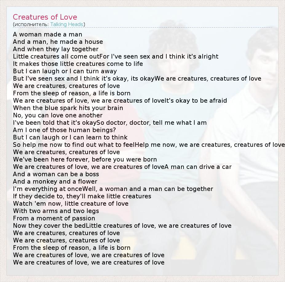 А как ты думаешь, о чем песня "Creatures of Love" ?