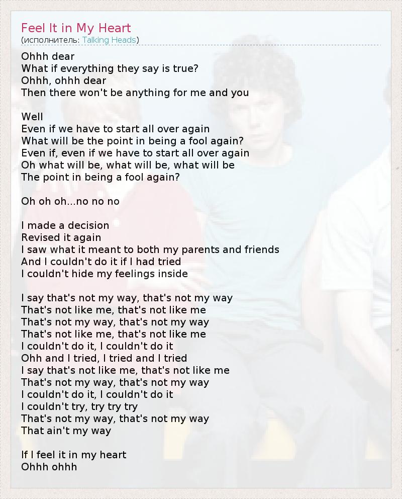 А как ты думаешь, о чем песня "Feel It in My Heart" ?