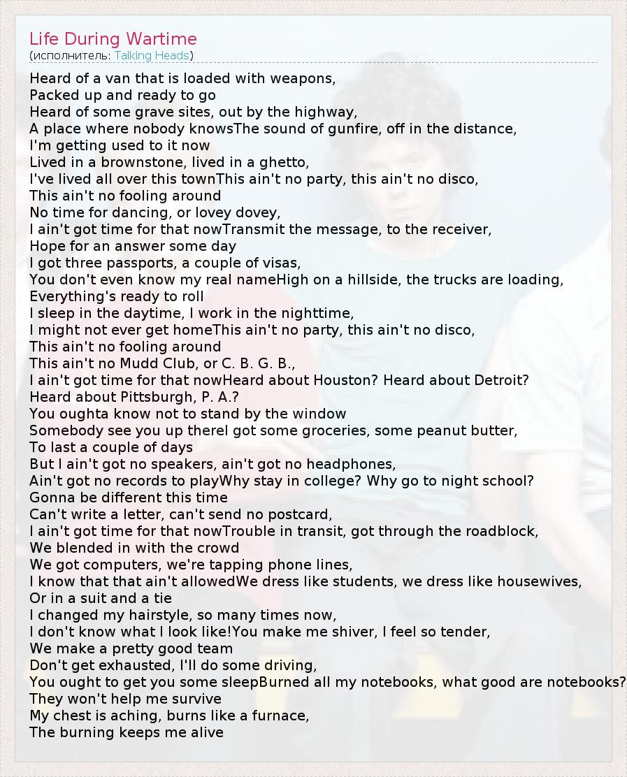 А как ты думаешь, о чем песня "Life During Wartime" ?