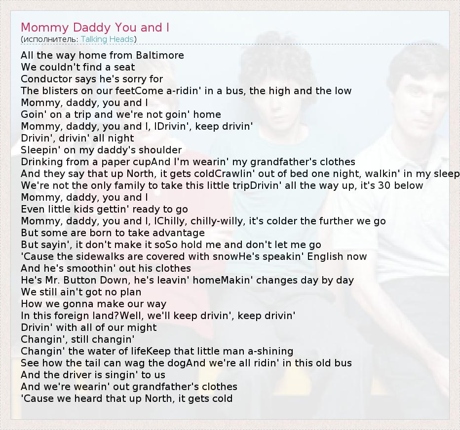 А как ты думаешь, о чем песня "Mommy Daddy You and I" ?