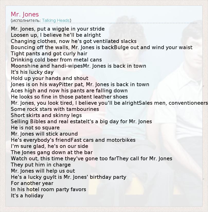 А как ты думаешь, о чем песня "Mr. Jones" ?