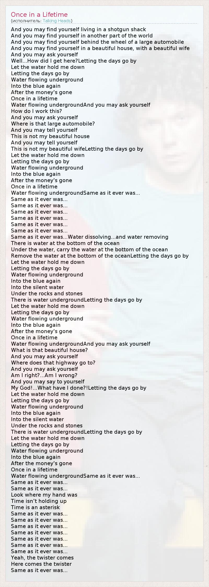 А как ты думаешь, о чем песня "Once in a Lifetime" ?