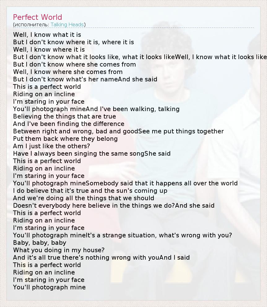 А как ты думаешь, о чем песня "Perfect World" ?
