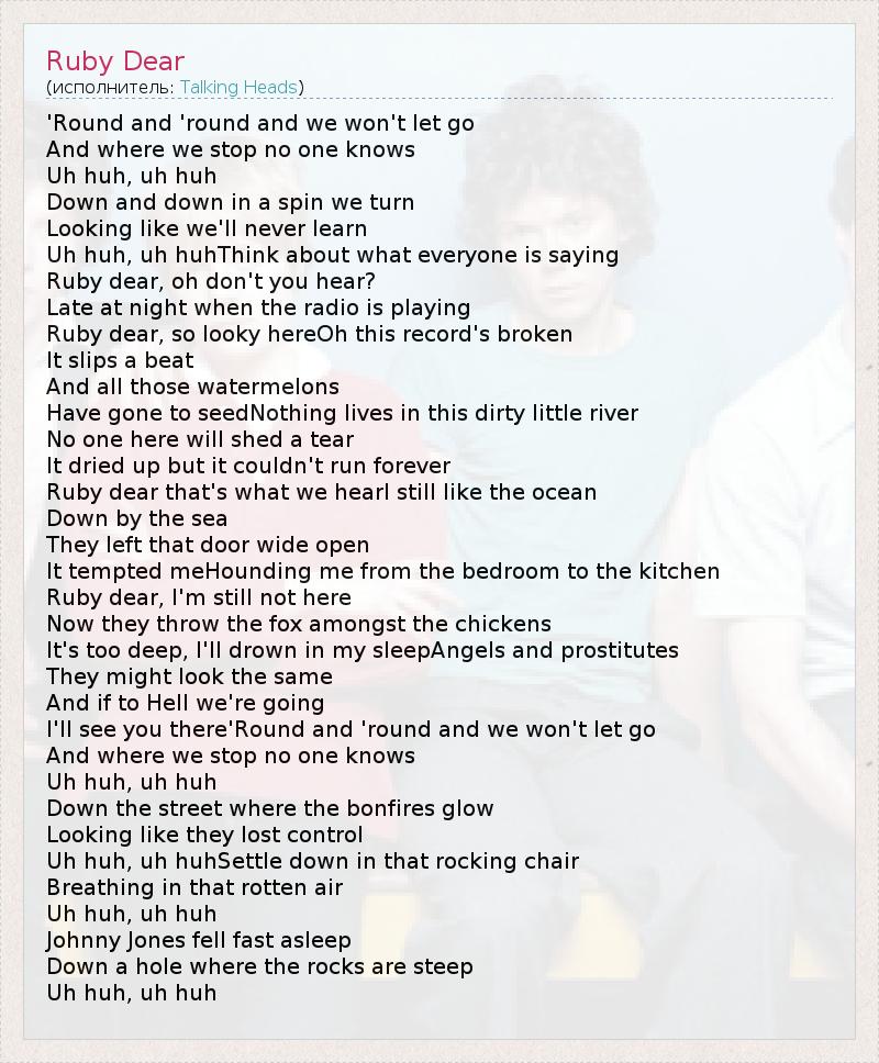 А как ты думаешь, о чем песня "Ruby Dear" ?