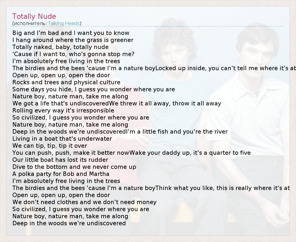 А как ты думаешь, о чем песня "Totally Nude" ?