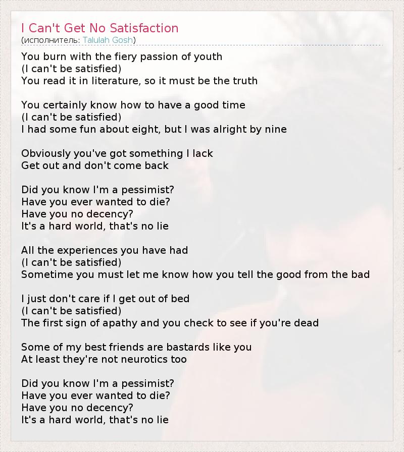 ГлавнаяИсполнителиTalulah GoshI Can't Get No Satisfaction