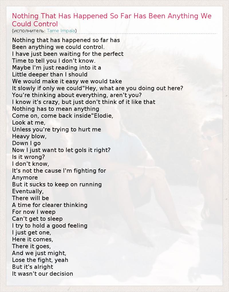А как ты думаешь, о чем песня "Nothing That Has Happened So Far Has Been Anything We Could Control" ?