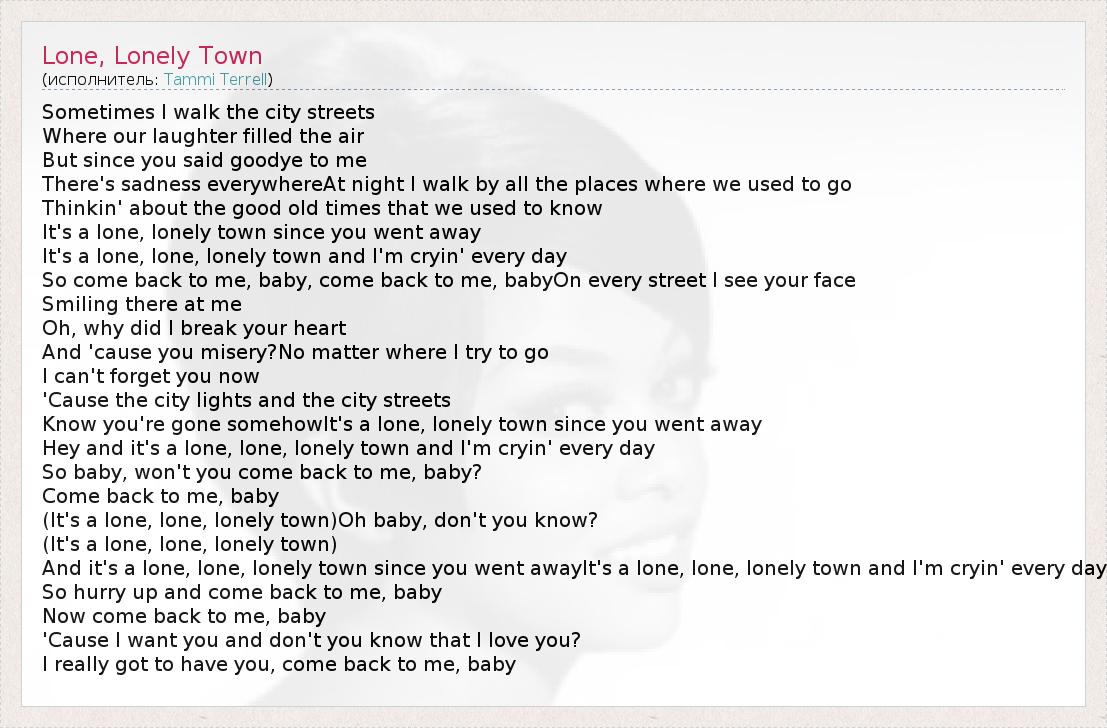 А как ты думаешь, о чем песня "Lone, Lonely Town" ?