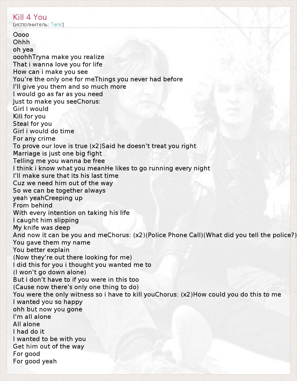 А как ты думаешь, о чем песня "Kill 4 You" ?