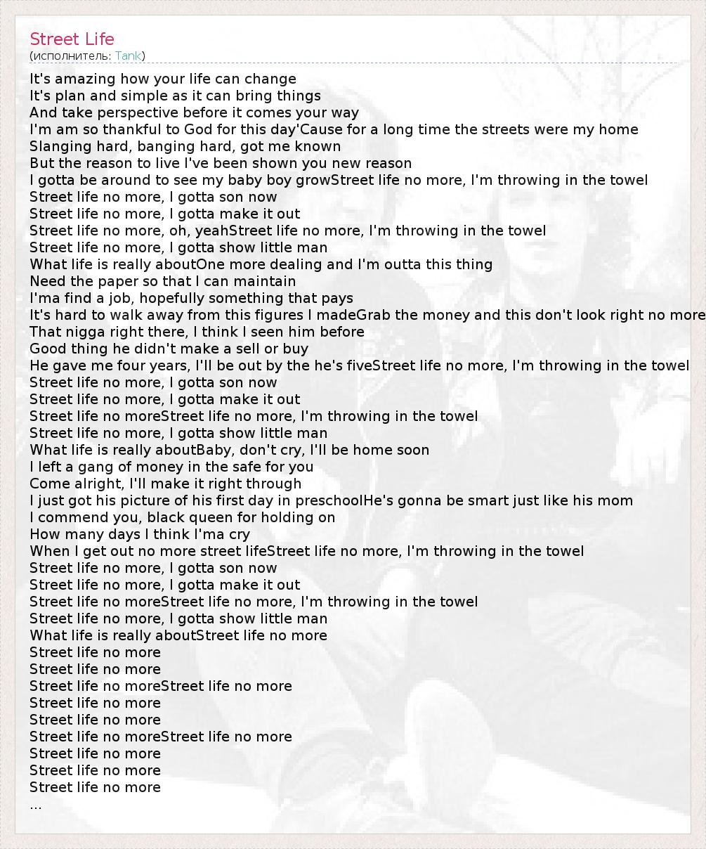 When I get out no more street lifeStreet life no more, I'm throwing in the towel