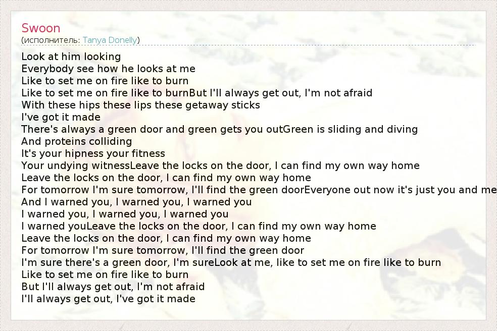 I'm sure there's a green door, I'm sureLook at me, like to set me on fire like to burn