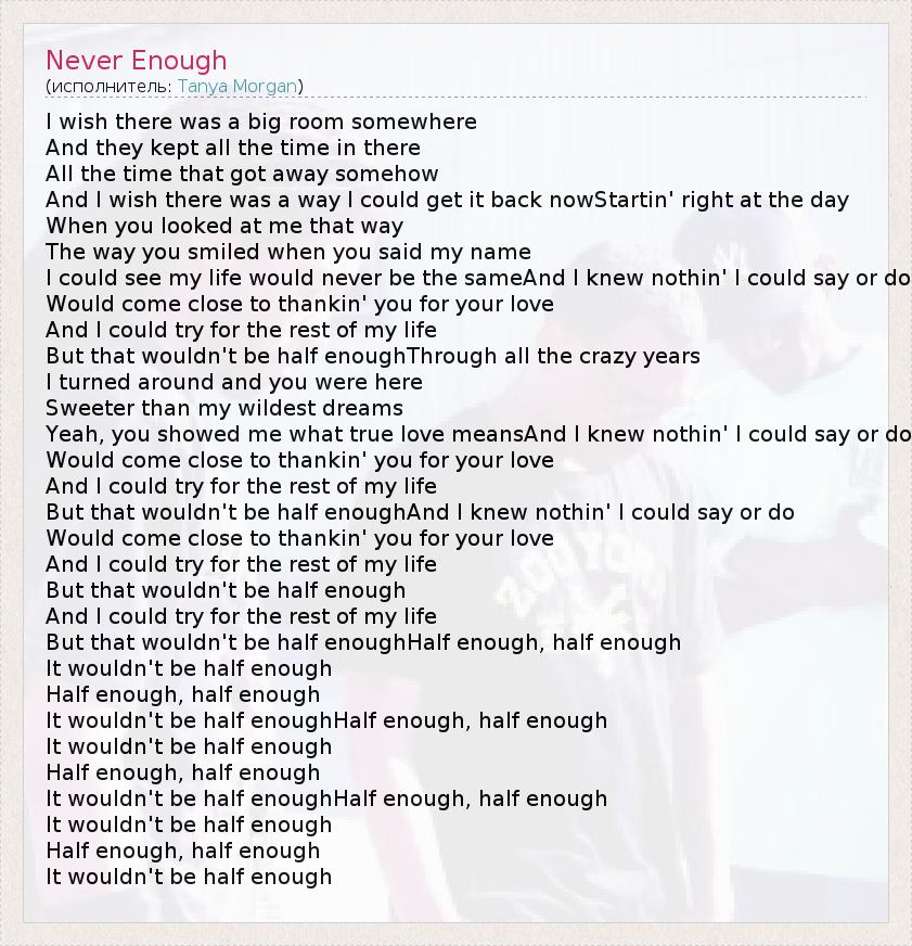 But that wouldn't be half enoughAnd I knew nothin' I could say or do