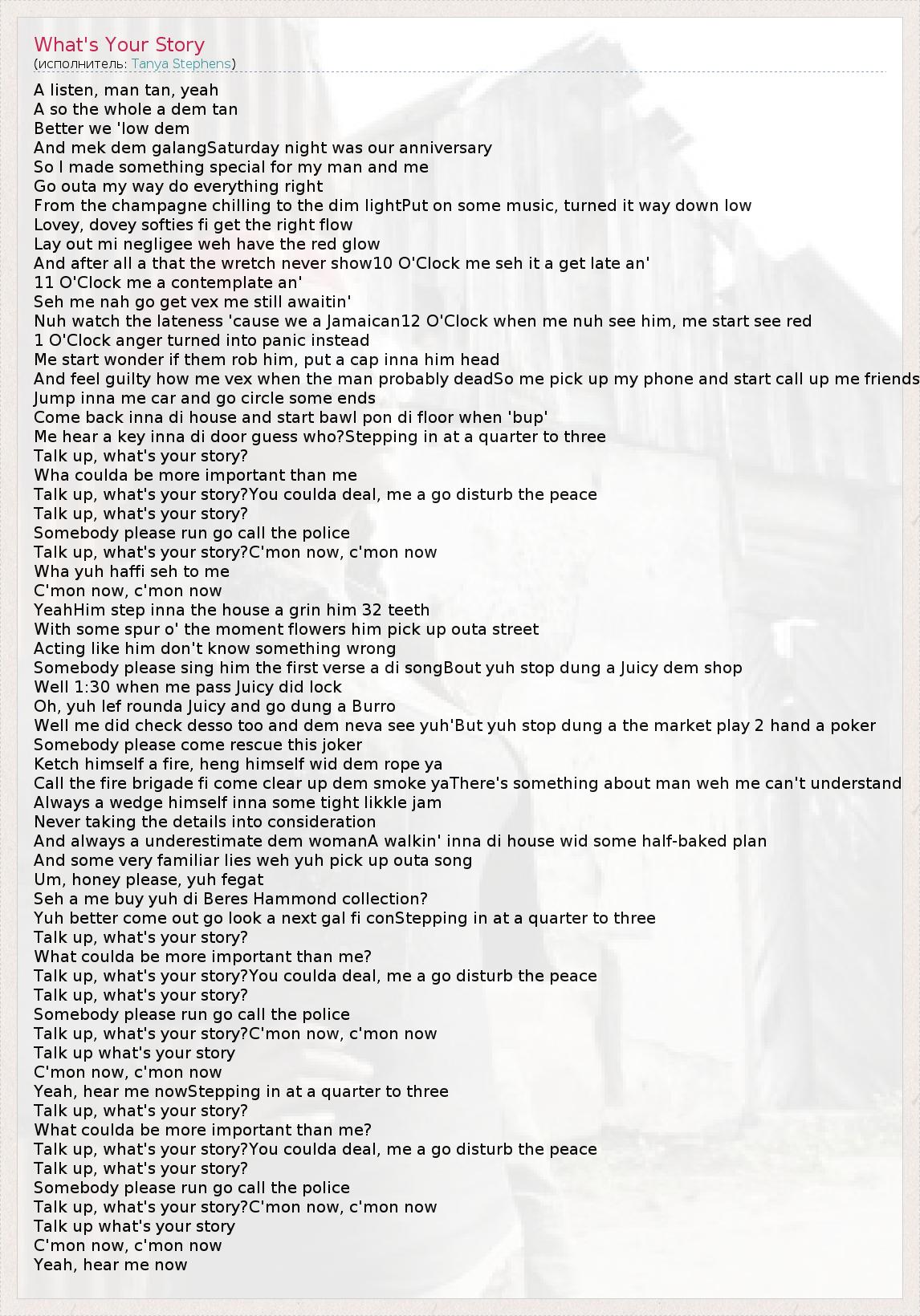 А как ты думаешь, о чем песня "What's Your Story" ?