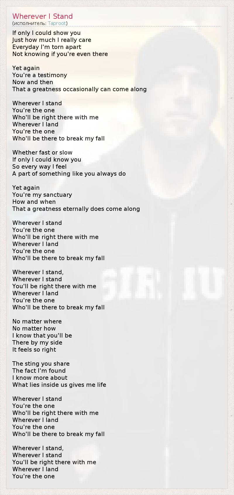 А как ты думаешь, о чем песня "Wherever I Stand" ?