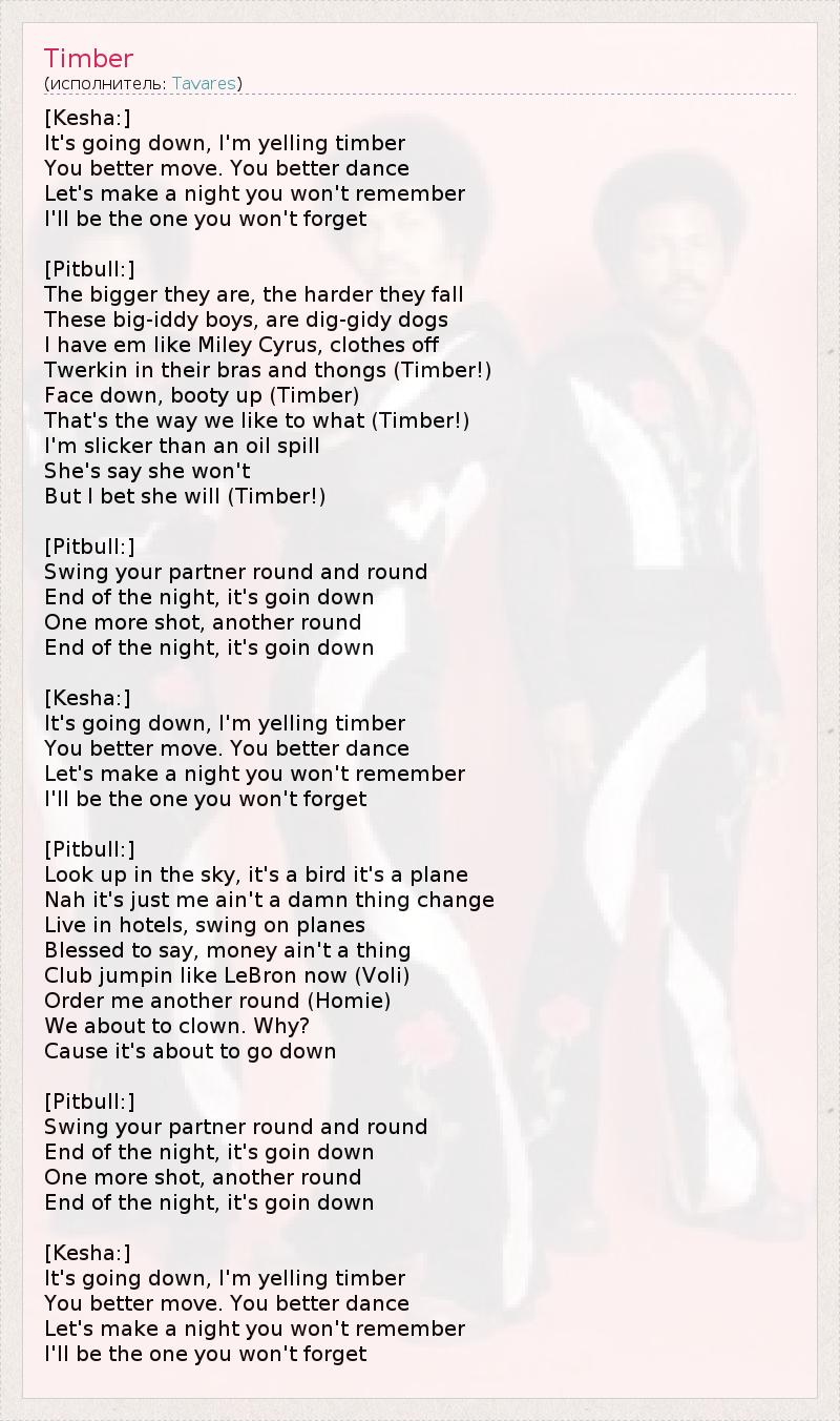 А как ты думаешь, о чем песня "Timber" ?