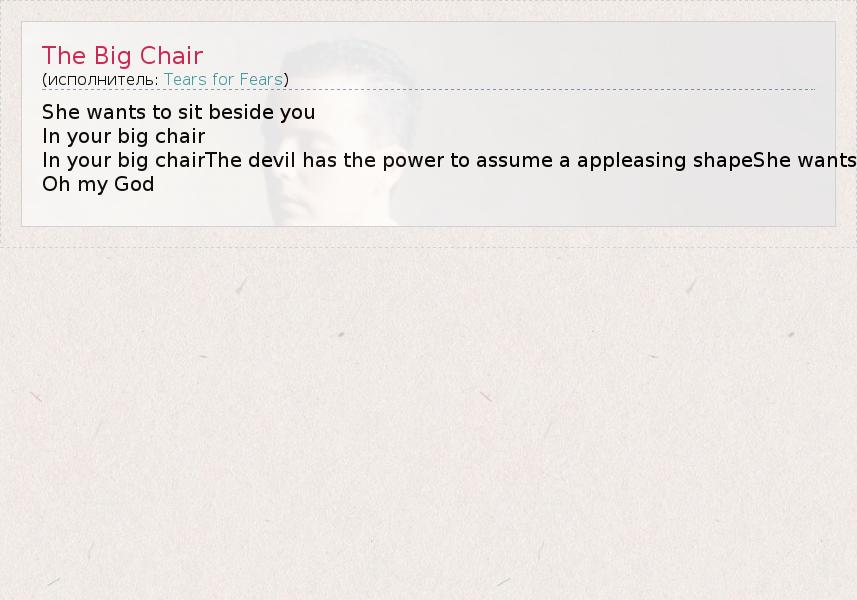 А как ты думаешь, о чем песня "The Big Chair" ?
