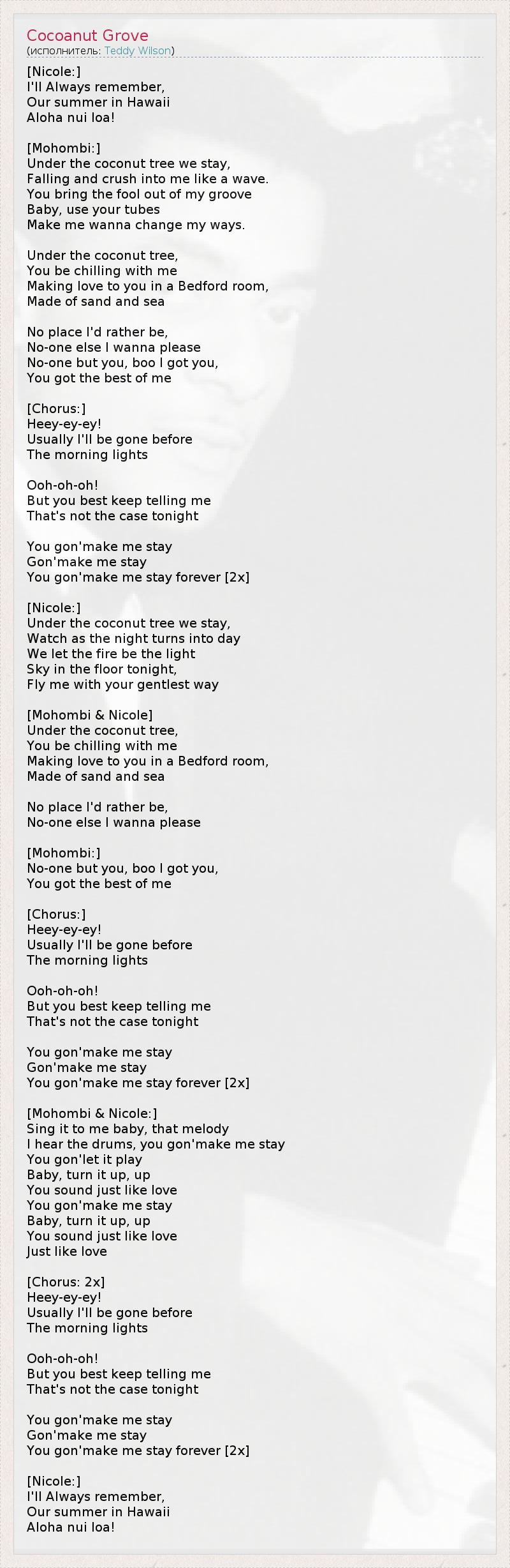 А как ты думаешь, о чем песня "Cocoanut Grove" ?