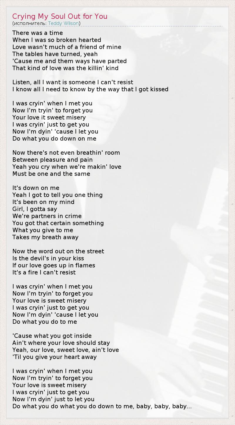 А как ты думаешь, о чем песня "Crying My Soul Out for You" ?