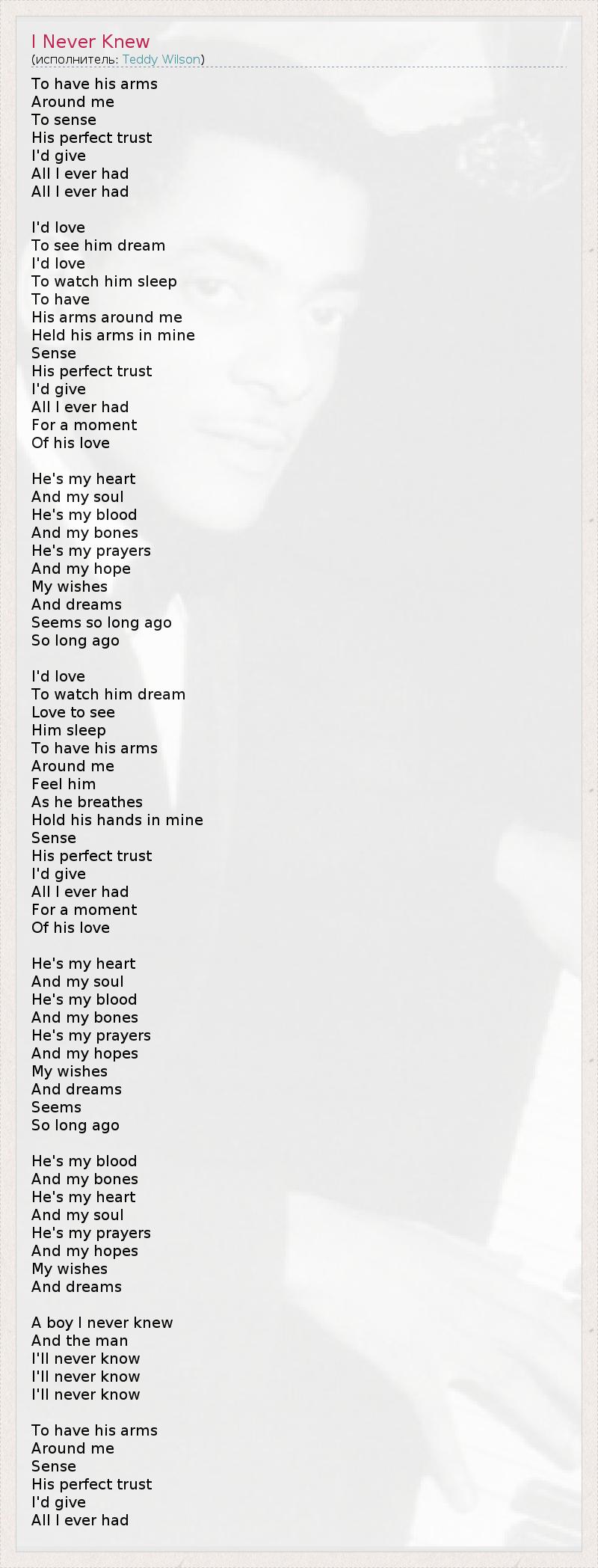 А как ты думаешь, о чем песня "I Never Knew" ?