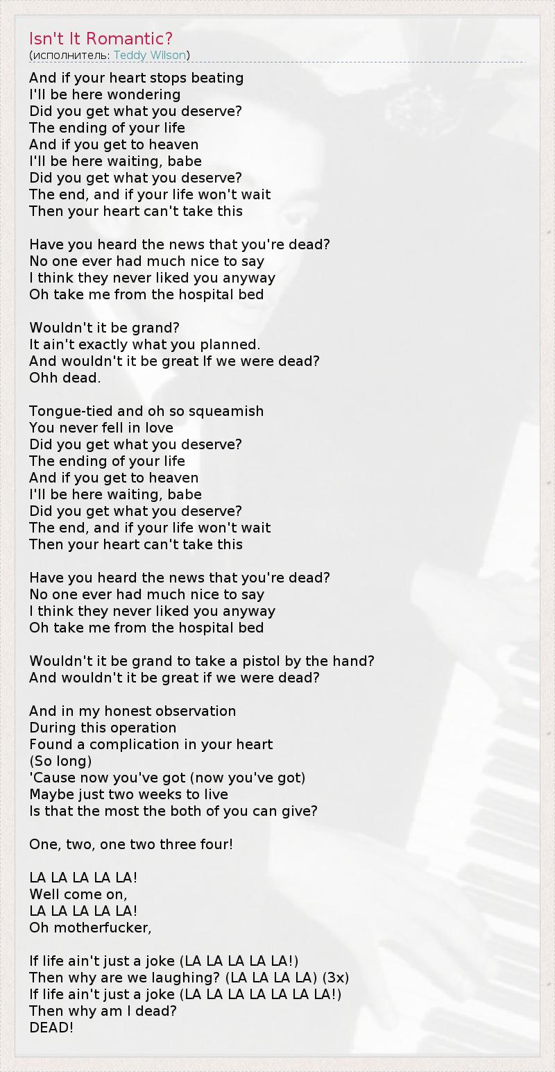 А как ты думаешь, о чем песня "Isn't It Romantic?" ?