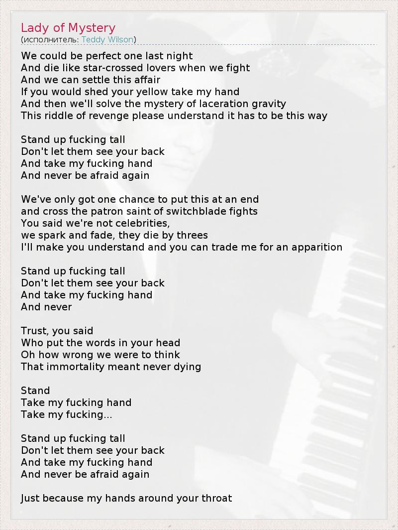 А как ты думаешь, о чем песня "Lady of Mystery" ?