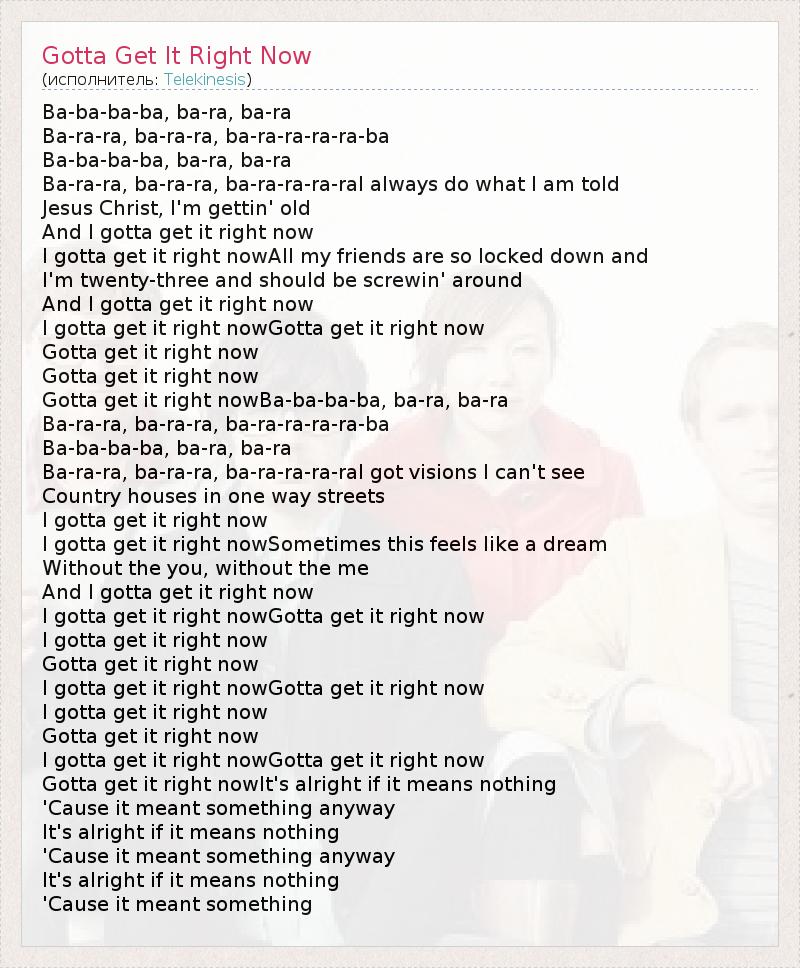 А как ты думаешь, о чем песня "Gotta Get It Right Now" ?