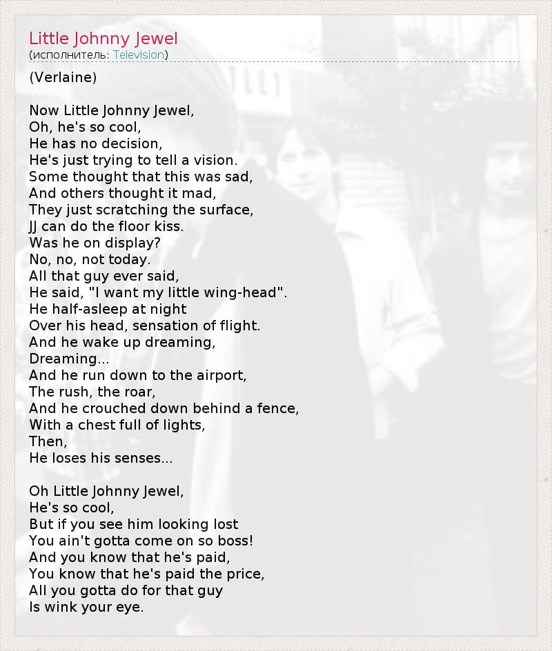 А как ты думаешь, о чем песня "Little Johnny Jewel" ?