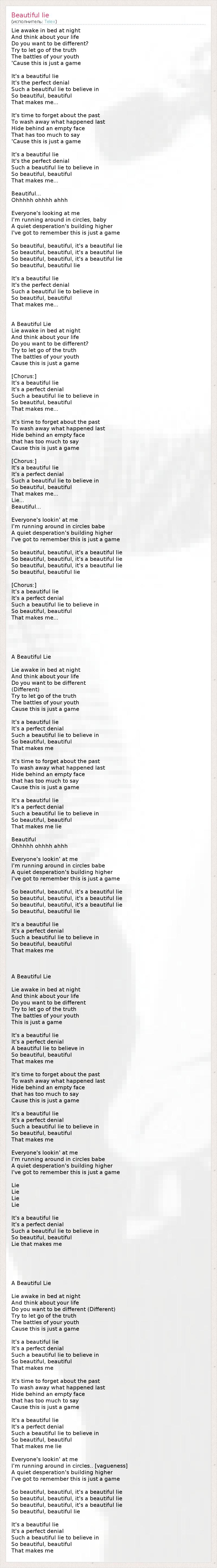 А как ты думаешь, о чем песня "Beautiful lie" ?