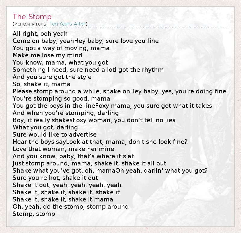 Please stomp around a while, shake onHey baby, yes, you're doing fine