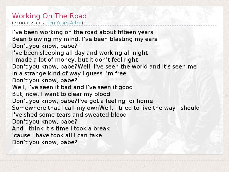 А как ты думаешь, о чем песня "Working On The Road" ?