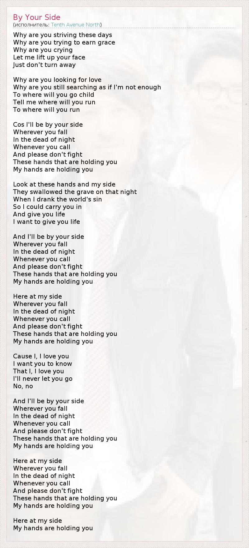 Это интересно:Tenth Avenue North - Американская Современная Христианская рок-группа из West Palm Beach, Florida. Майк Данхэй – вокал и акустическая гитара, Джефф Оуэн - электрогитара и бек вокал, Джейсон Джеймисон - барабаны, и Скотт Сандерс – бас гитара.Их дебютный альбом «Over and Underneath» был выпущен 20 мая, 2008, на студии Reunion Records, и группа начала турне по его продвижению. Их песня "Love is Here" была на вершине двадцатки... продолжение