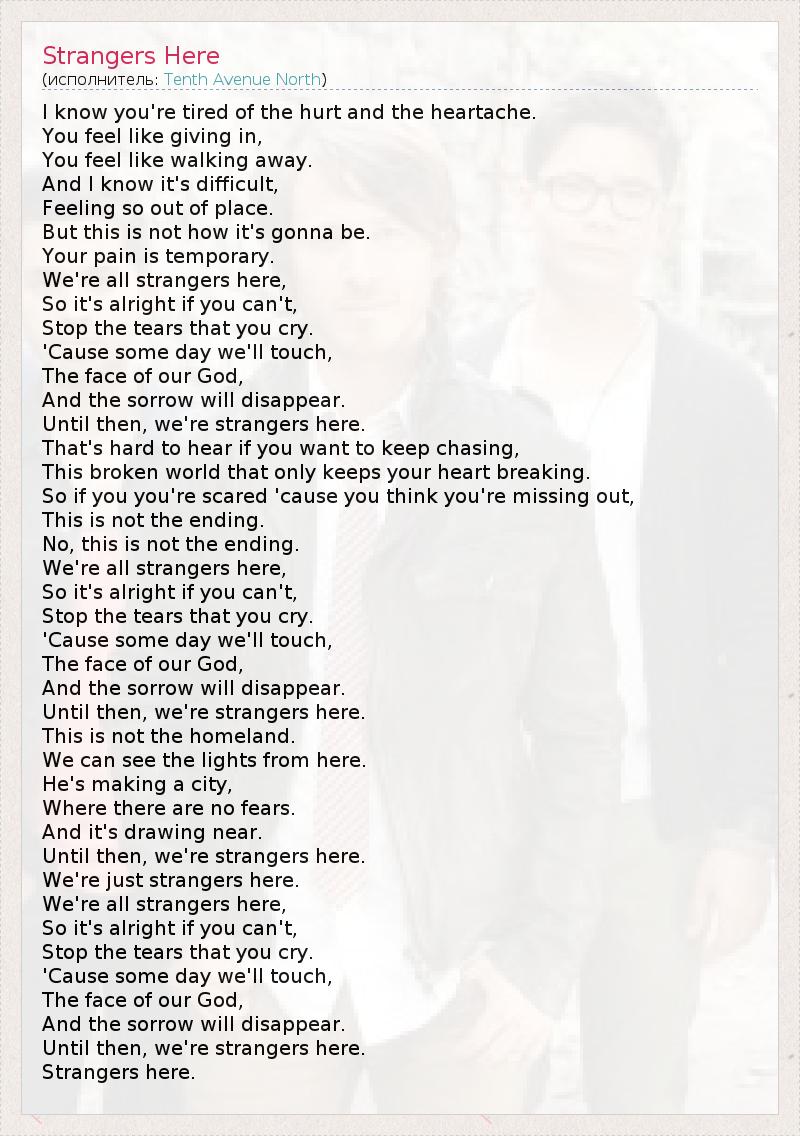 А как ты думаешь, о чем песня "Strangers Here" ?
