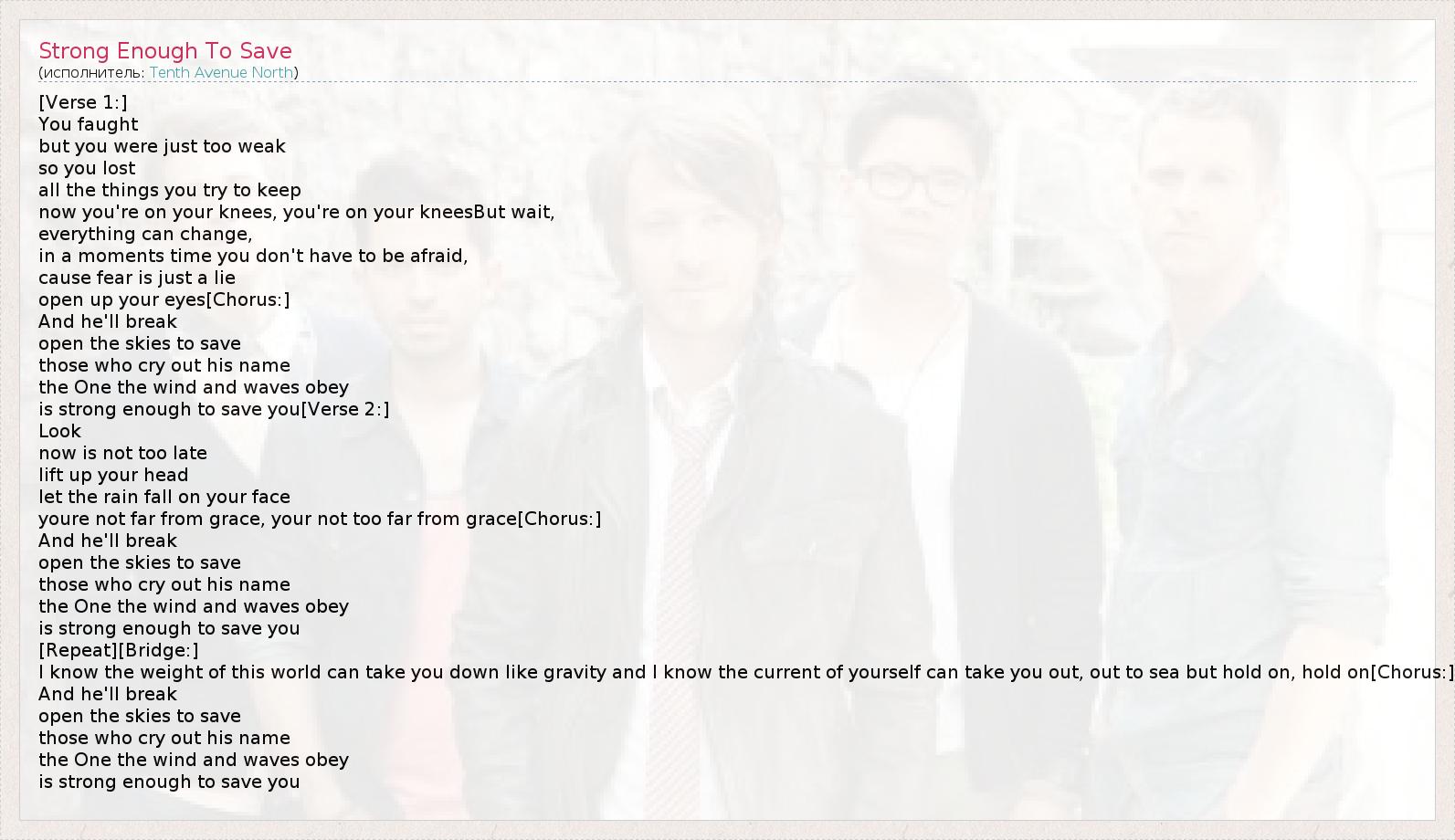 А как ты думаешь, о чем песня "Strong Enough To Save" ?