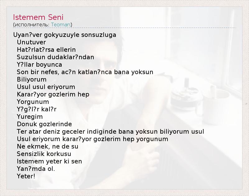 А как ты думаешь, о чем песня "Istemem Seni" ?